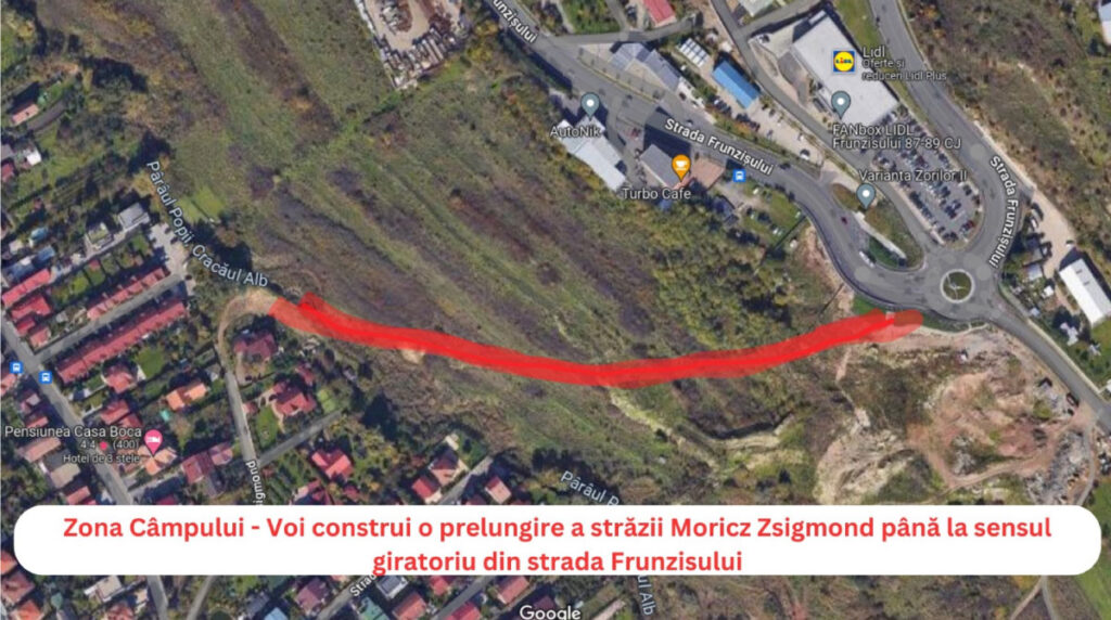 a. Voi construi o prelungire a străzii Moricz Zsigmond până la sensul giratoriu din strada Frunzisului, în apropierea blocului turn Wings.
