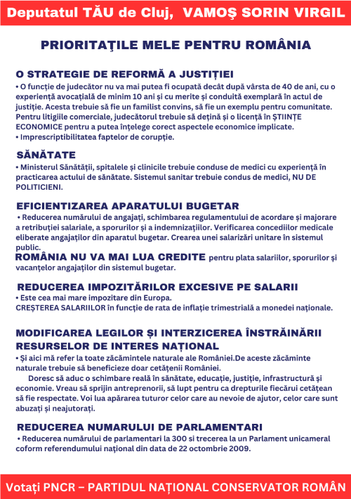 Doresc să aduc o schimbare reală în sănătate, educație, justiție, infrastructură și economie. Vreau sã sprijin antreprenorii, sã lupt pentru ca drepturile fiecărui cetățean să fie respectate.